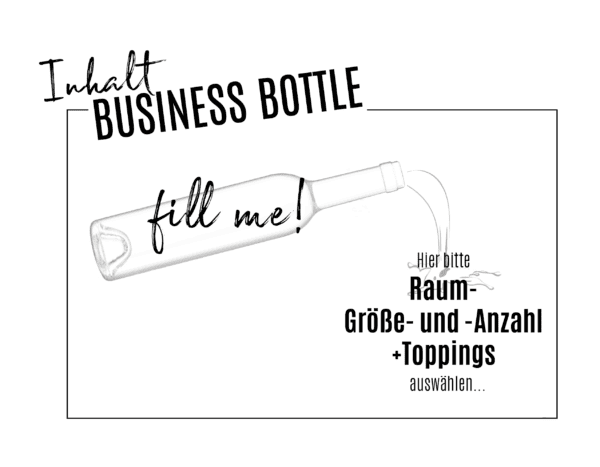 Diese Toppings kannst du direkt im BUSINESS BOTTLE „FILL ME!“ Produktkonfigurator zu deiner BUSINESS BOTTLE optional dazu buchen (mit in den Warenkorb werfen ;- )…