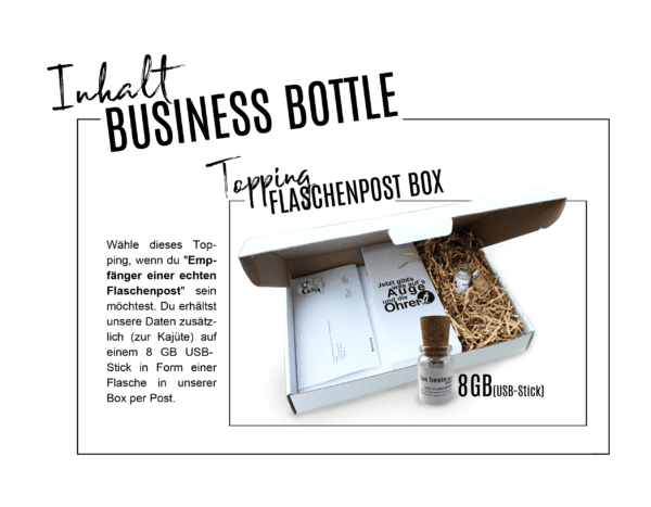 - Flaschenpost Box (USB-Stick in der Flasche per Post) einmalig 29,90 €